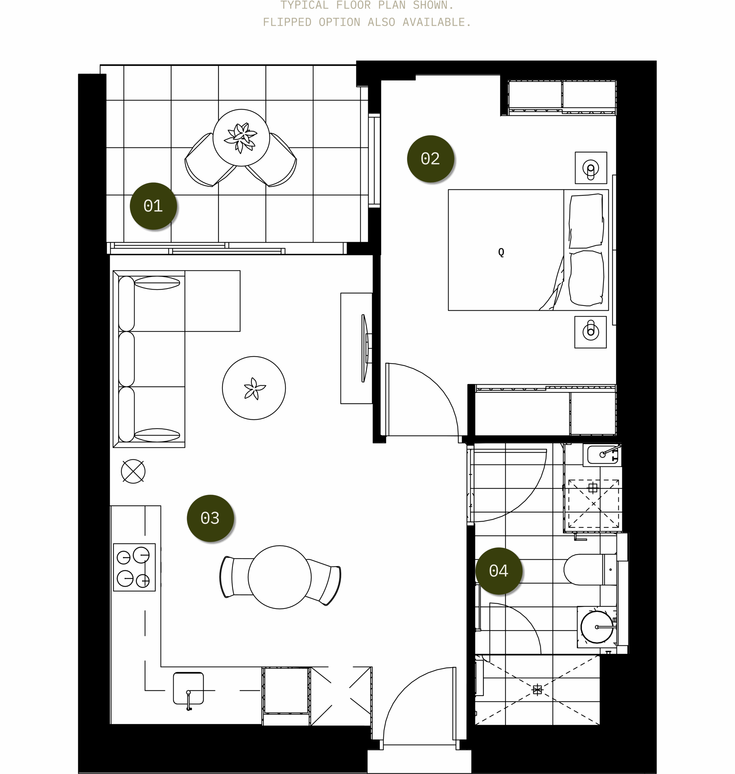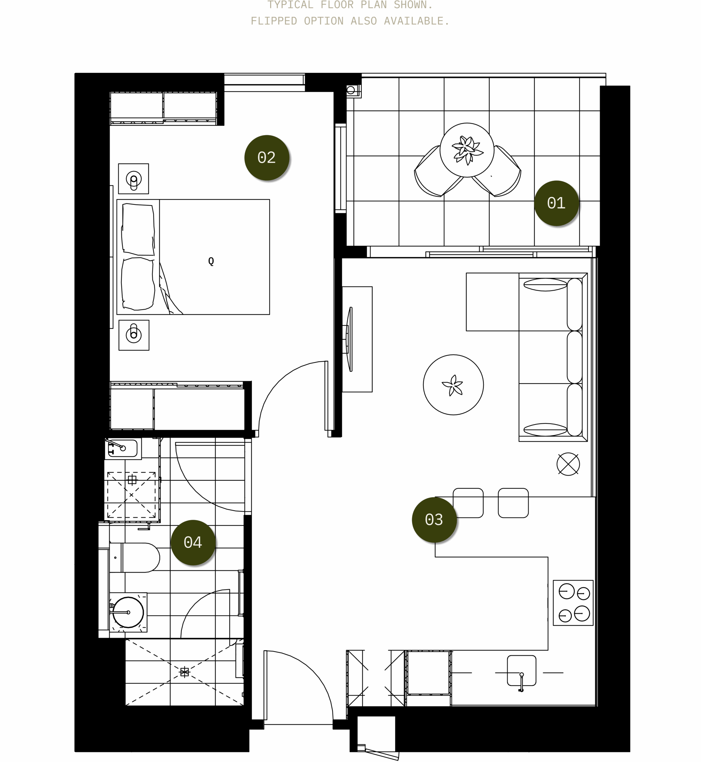 Designed to offer a more open and customisable space, Apartment Type B6 offers a spacious enclosed kitchen with an island bench. The open kitchen and dining area flow into a living area, which is flanked by the master. The bedroom itself is packed with inbuilt storage.