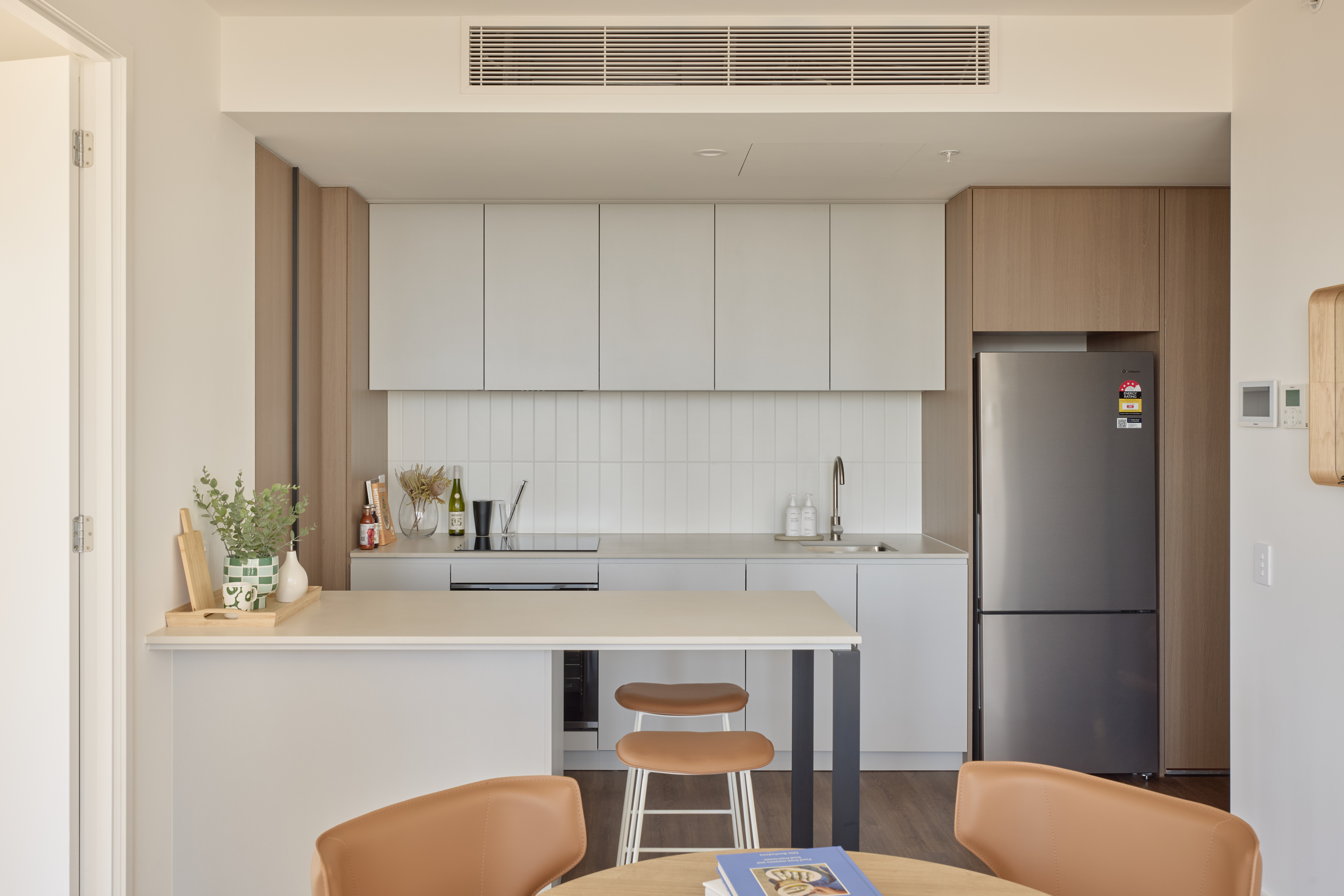 Apartment Type C2 offers renters options in how to relax, work, and entertain. In addition to an enveloping kitchen area, renters gain a versatile alfresco area, that can be used for dining, or as a cosy additional room. The master is large enough to allow for a small desk setup, and a roomy entrance area has space for both your bits, and your bobs, in addition to some exciting storage opportunities. It’s also worth mentioning that two bathrooms is just out of this world lovely, regardless of your living situation.