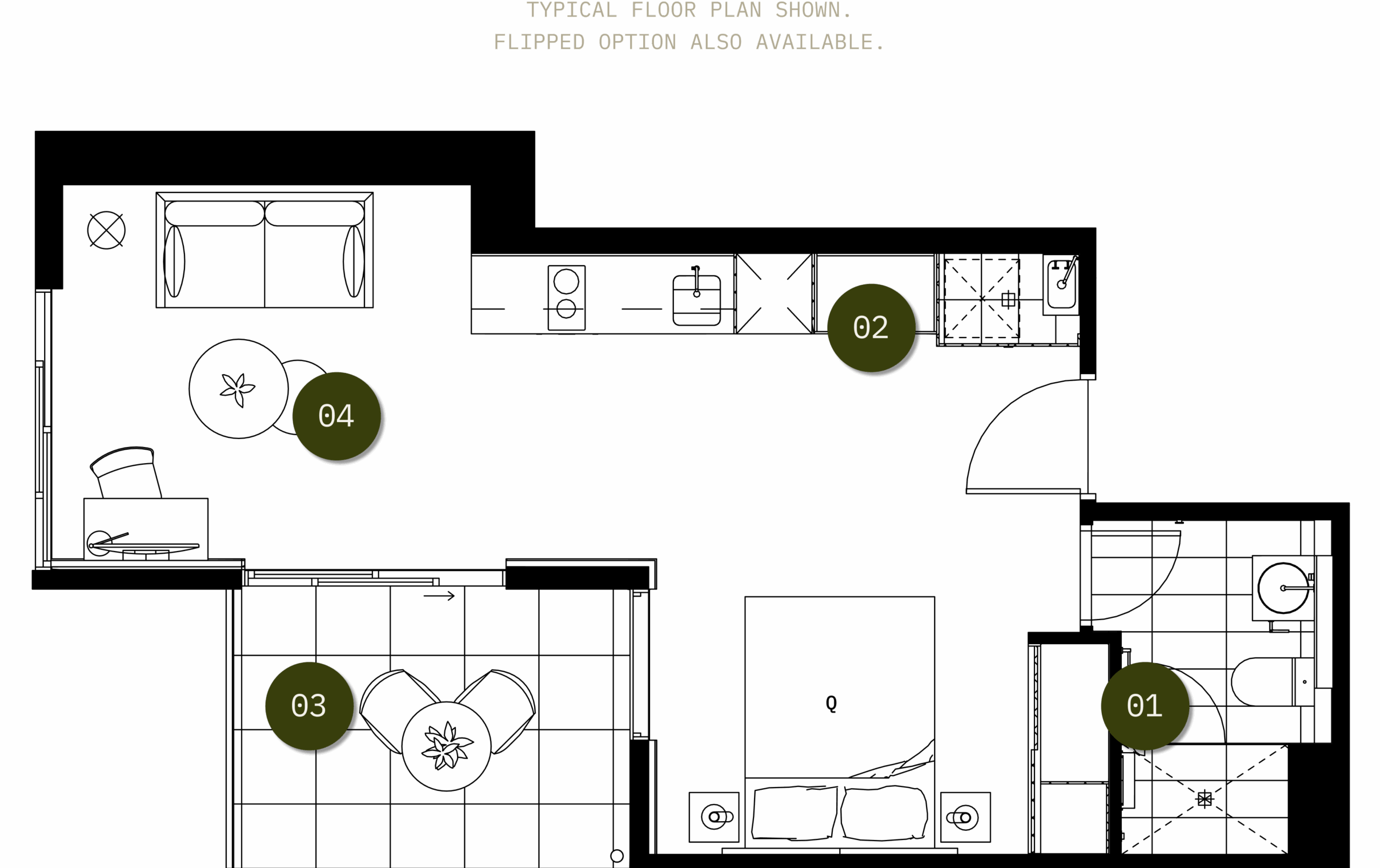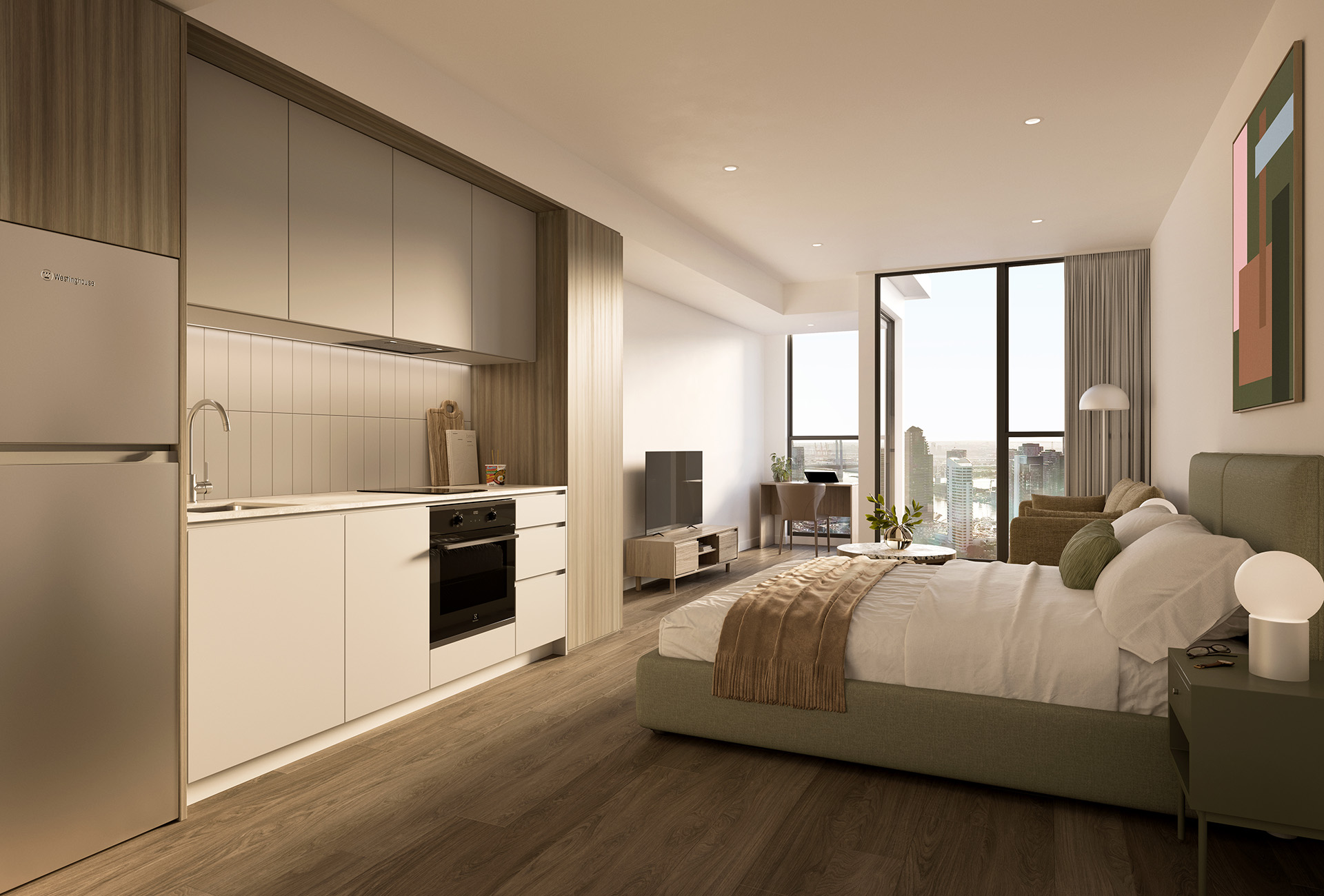 Compact yet cleverly designed, Studio Type A3 offers 36 sqm of efficient living space, ideal for those who value functionality and smart design. Featuring a dedicated study nook and a sleek bathroom, this layout is perfect for professionals, students, or anyone seeking a low-maintenance lifestyle. Positioned on levels 30 to 35, facing either North West or East, these studios have abundant natural light from their elevated outlook.